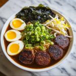 Finally, ladle the steaming hot broth over the noodles. Then, it’s time to artfully arrange your toppings: soft-boiled eggs with their glowing yolks, savory chashu beef slices, crisp bean sprouts, vibrant green onions, and delicate nori strips. This finishing touch creates a bowl that’s as beautiful as it is delicious.
