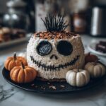 This Skellington Cheese Ball Appetizer is a festive and spooky treat perfect for Halloween gatherings. Creamy cream cheese blended with sharp cheddar, mozzarella, and savory seasonings is shaped into a skull and decorated to resemble Jack Skellington. It’s easy to make, fun to serve, and pairs perfectly with crackers and veggies.