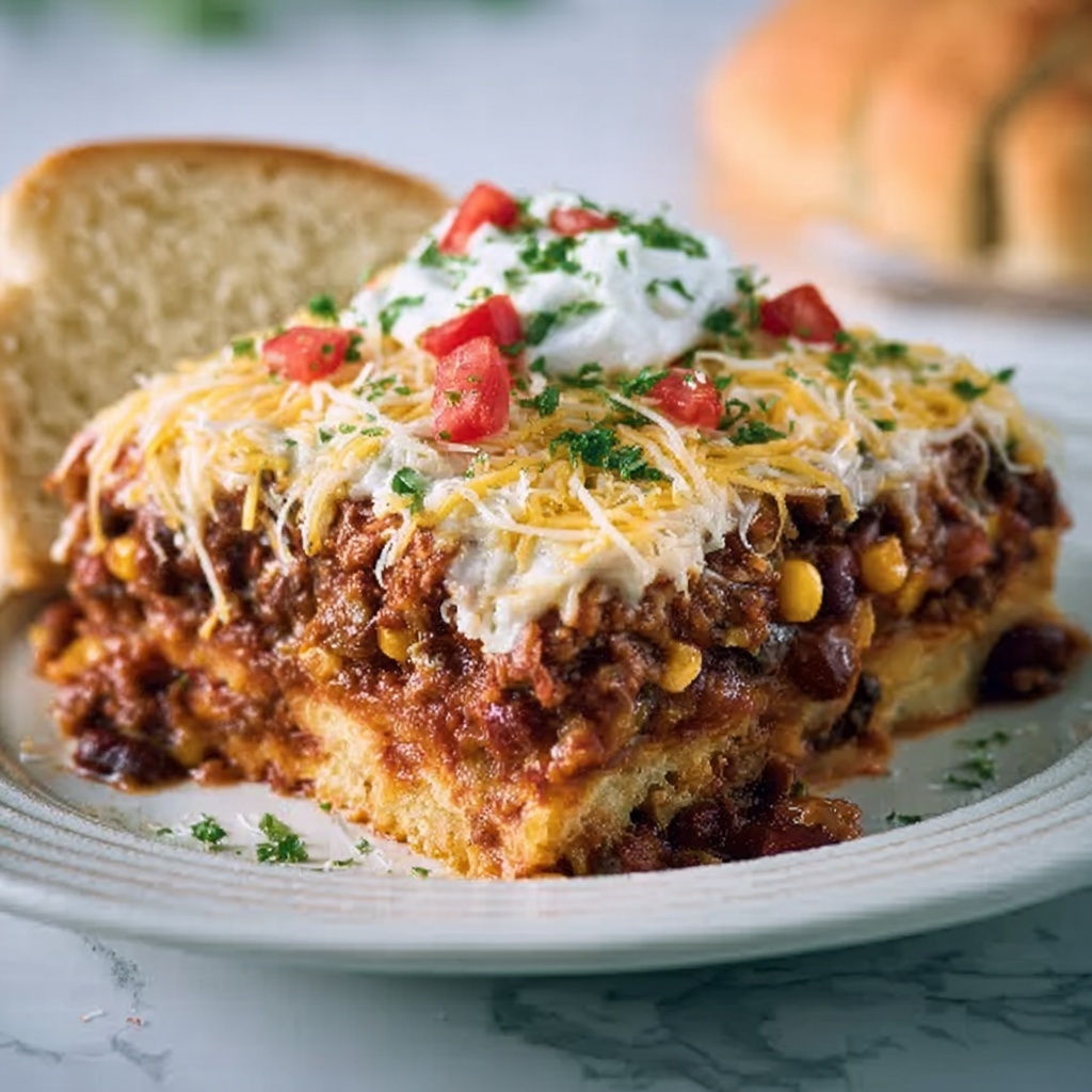 A flavorful Southwest Lasagna that layers seasoned ground beef or turkey, black beans, corn, and spicy diced tomatoes with creamy cheese blends and crispy corn tortillas. Perfectly baked to meld bold Mexican-inspired flavors, topped with melted cheese and fresh cilantro garnish.