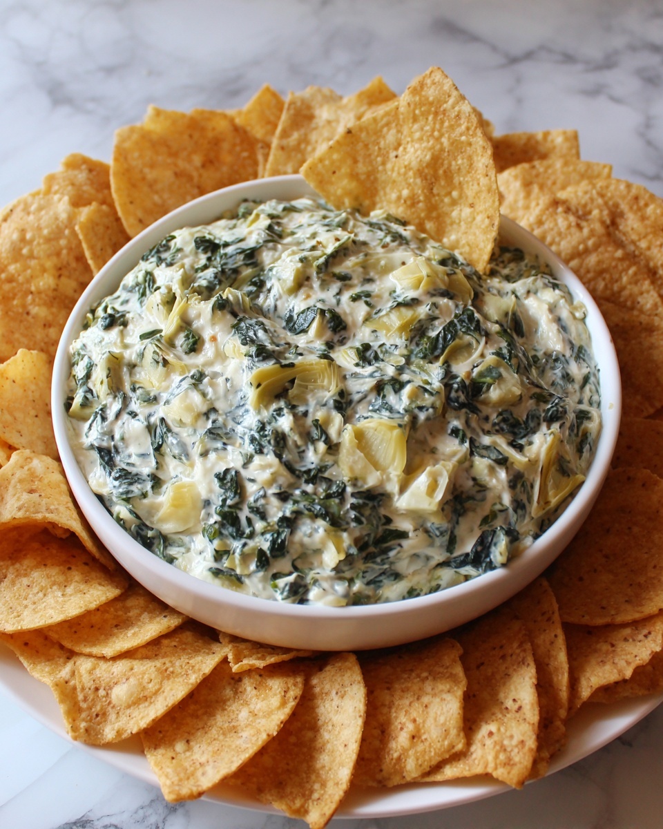 • Frozen spinach (10 oz package): Provides a tender, mild base—make sure it’s well drained to avoid watery dip.