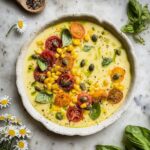 This Summer Sweet Corn Gazpacho is a refreshingly smooth and creamy cold soup perfect for warm days. Made with fresh sweet corn, cucumber, bell pepper, tomatoes, and a hint of jalapeno, this vibrant gazpacho combines the natural sweetness of corn with zesty lemon juice and sherry vinegar for a perfect balance of flavors. Served chilled and garnished with fresh basil, heirloom tomatoes, and a drizzle of basil oil, it’s a light, healthy, and elegant starter or light meal.