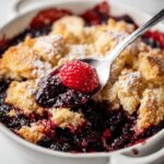 This Sweet Blackberry Cobbler is a delightful dessert that combines fresh or thawed blackberries with a tender biscuit topping baked to golden perfection. The juicy berry filling is thickened with cornstarch and spiced with a touch of vanilla and lemon juice, creating a perfect balance of sweet and tart flavors. Ideal for serving warm, this comforting cobbler pairs wonderfully with whipped cream or vanilla ice cream.