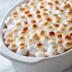 When the casserole is done with the initial baking, remove it from the oven and sprinkle a layer of marshmallows evenly on top. Follow with a generous layer of streusel crumbs, and if you like, scatter a few more marshmallows over the crumbs for extra gooeyness. Return the casserole to the oven and bake for another 10 to 15 minutes until golden and bubbly. For that iconic golden-brown finish, pop it under the broiler at 400°F until the marshmallows turn a perfect toasted caramel shade. Serve warm to enjoy the magical contrast and comforting flavors.