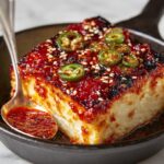 In a small bowl, whisk together the gochujang, honey, rice vinegar or lime juice, toasted sesame oil, soy sauce, and grated garlic until smooth and well combined. This glaze is the heart and soul of the Swicy Baked Feta with Gochujang Honey Glaze Recipe—offering a bold mix of sweet, tangy, and spicy notes that transform the cheese into pure indulgence.