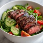 - Serve: Serve the salad immediately to enjoy the contrast of warm steak and fresh vegetables with the zesty dressing.