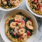 This Tomato Spinach Shrimp Pasta is a quick and flavorful dinner option, combining succulent shrimp, fresh spinach, and juicy grape tomatoes in a savory garlic butter sauce. Ready in just 30 minutes, this dish pairs perfectly with al dente spaghetti for a balanced, nutritious meal that satisfies seafood and pasta lovers alike.