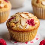 Deliciously moist and fluffy vegan raspberry almond muffins featuring a perfect blend of almond milk, vegan yogurt, and fresh raspberries. Topped with crunchy flaked almonds and a subtly sweet raspberry glaze, these muffins are ideal for a wholesome breakfast or snack.